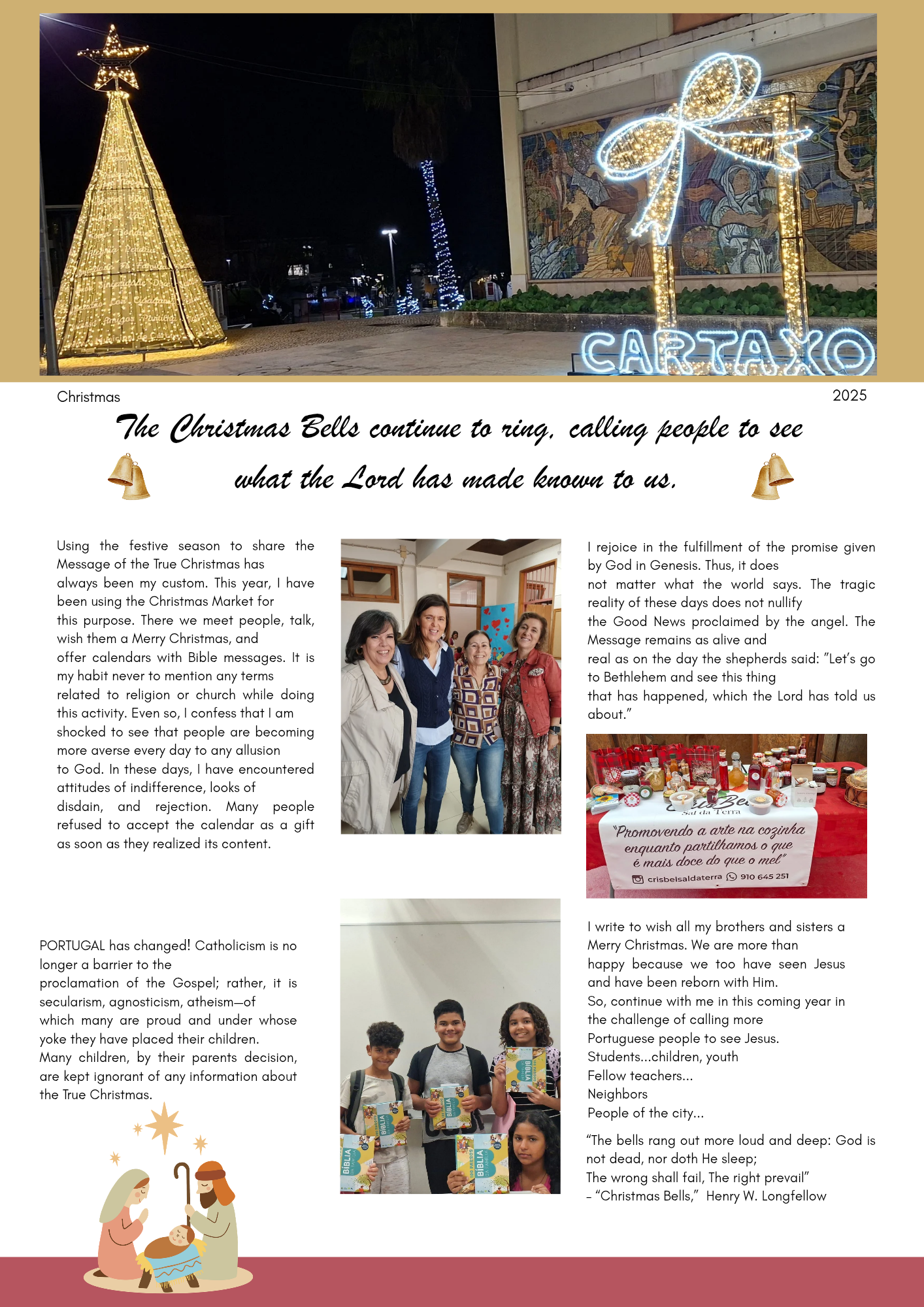 The Christmas Bells continue to ring, calling people to see what the Lord has made known to us.